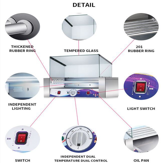 热狗保温机由温室玻璃制成 普通玻璃易碎 不单很容易割手 而且还威胁人安全 温室玻璃不切手沙 易用热狗保温机
