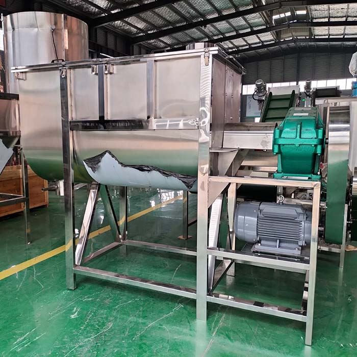 1. The U-shaped tank cover has an inlet for materials. You can also design sprayers or add liquid devices according to customer requirements. A rotor shaft consisting of a transverse bracket and a spiral belt is installed in the tank.
